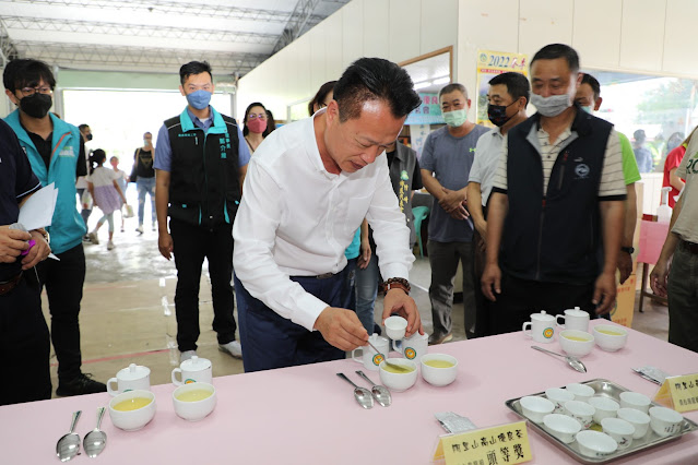 民意日報記者賴南賢報導/嘉義縣阿里山茶業協會、嘉義縣總工會及中華民國製茶工會全國聯合會共同主辦的「111年嘉義縣春季阿里山高山優良茶競賽暨展示大會」,6月4日上午在嘉義縣竹崎鄉熱鬧登場,縣長翁章梁、勞青處長陳奕翰、嘉義縣總工會理事長鄭介維等人都到場向茶農致意並頒獎表揚,在場貴賓品嘗過高山茶的滋味甘醇後,對茶的品質給予極高評價。