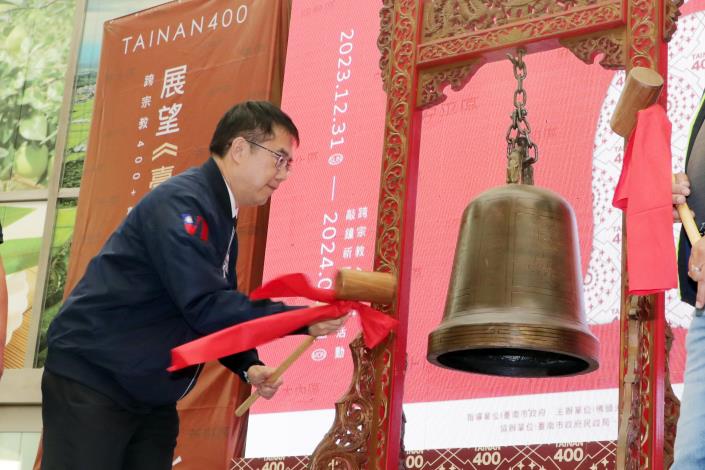 民意日報記者黃天辰報導/為迎接明年《臺南400》盛景,台南市政府結合民間團體串聯全市超過400間廟宇、教(會)堂等宗教團體,在今年跨年夜(12/31)一同辦理敲鐘祈福活動,今(19)日於永華市政中心召開記者會,祈願鐘聲從臺南出發,飄揚全臺灣,遠播國際世界各地。